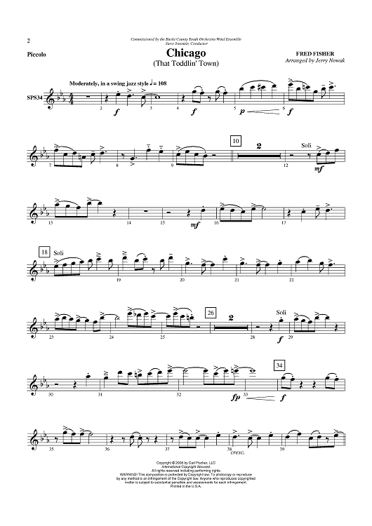 "Chicago - Piccolo" Sheet Music by Fred Fisher