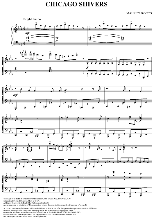 Digital Sheet Music for Chicago Shivers by Maurice Rocco scored for Piano Solo; id:355037