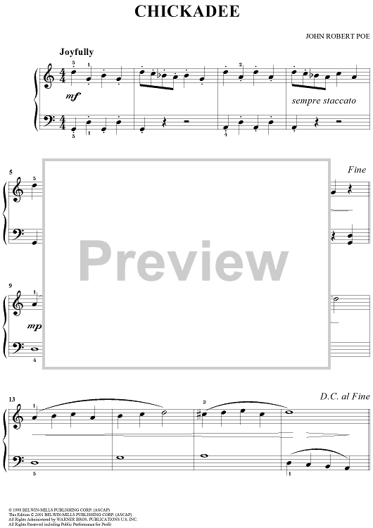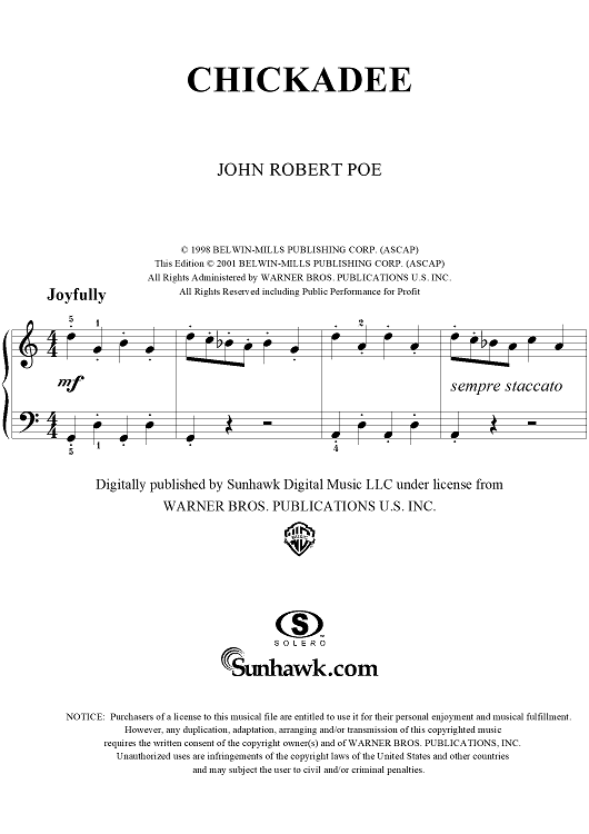 Digital Sheet Music for Chickadee by John Robert Poe scored for Piano Solo; id:285964