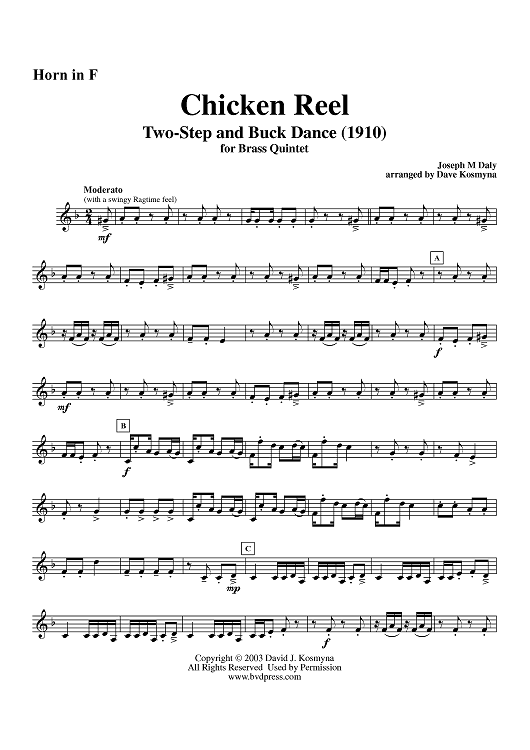 "Chicken Reel - Horn" Sheet Music by Joseph M. Daly