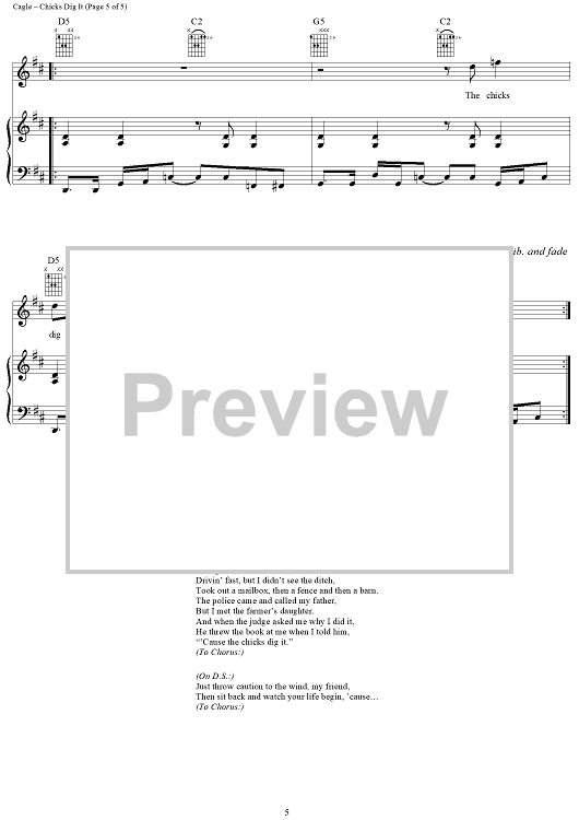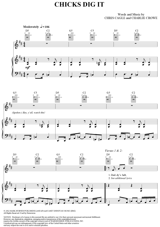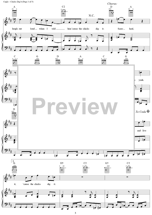 Digital Sheet Music for Chicks Dig It by Chris Cagle, Charlie Crowe scored for Piano/Vocal/Chords; id:303053