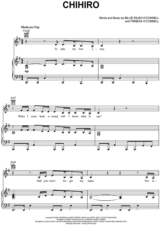 Digital Sheet Music for Chihiro by Billie Eilish, Finneas O'Connell scored for Piano/Vocal/Chords; id:502039