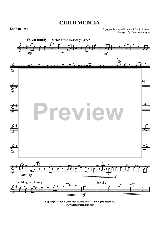 Digital Sheet Music for Child Medley - Euphonium 1 BC/TC by Various, Christa Habegger scored for Tuba Quartet; id:417640