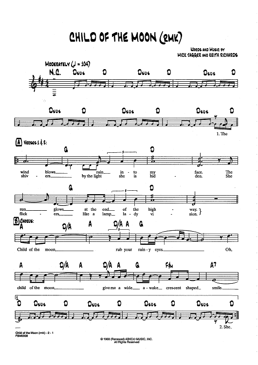 Digital Sheet Music for Child Of The Moon (RMK) by Keith Richards, The Rolling Stones, Mick Jagger scored for Lead Sheet; id:437301