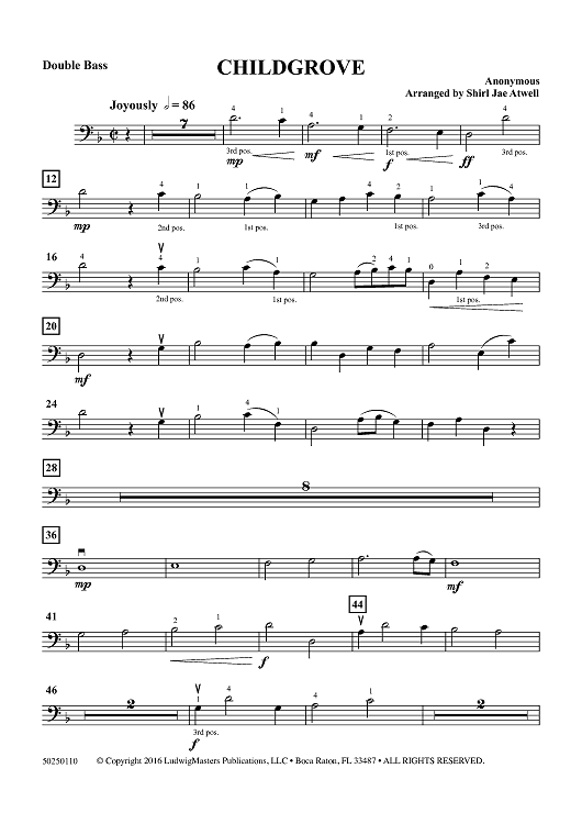 Digital Sheet Music for Childgrove - Double Bass by Anonymous, Shirl Jae Atwell scored for String Orchestra; id:462063