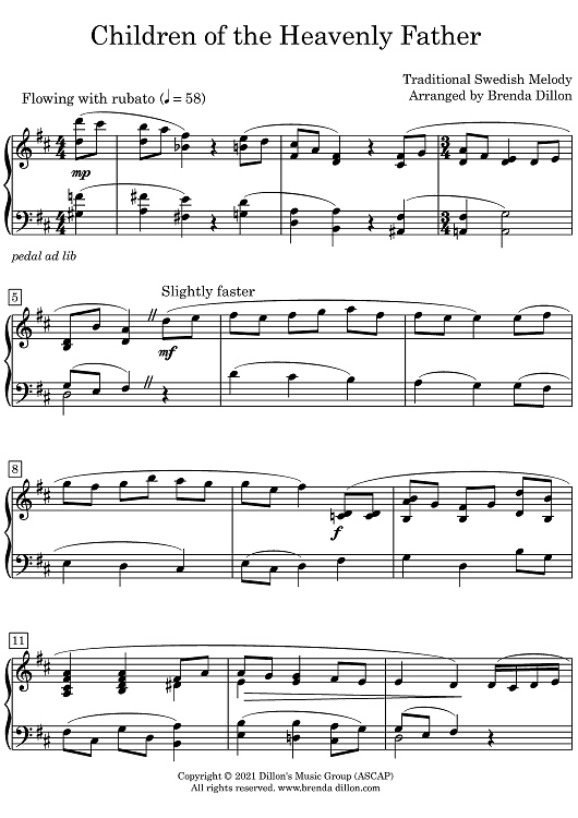 Digital Sheet Music for Children of the Heavenly Father by Traditional Swedish, Brenda Dillon scored for Piano; id:469389