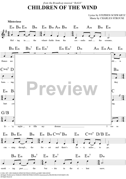 Digital Sheet Music for Children of the Wind by Charles Strouse, Stephen Schwartz scored for Lead Sheet; id:257801