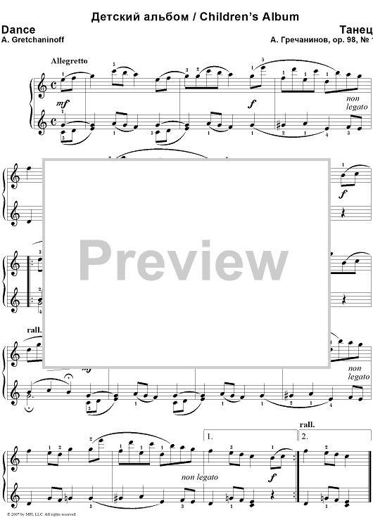 Digital Sheet Music for Children’s Album. 10. Dance by Alexander Gretchaninoff scored for Piano Solo; id:364008