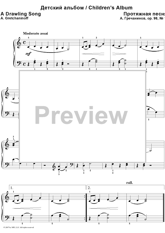 Digital Sheet Music for Children’s Album. 14. A Drawling Song by Alexander Gretchaninoff scored for Piano Solo; id:364012