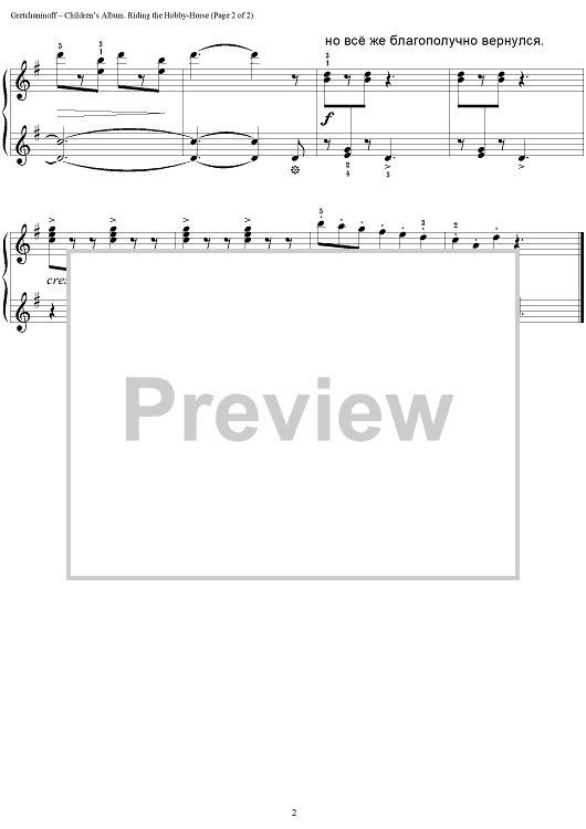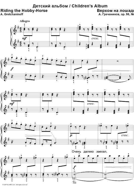 Digital Sheet Music for Children’s Album. 5. Riding the Hobby-Horse by Alexander Gretchaninoff scored for Piano Solo; id:364003