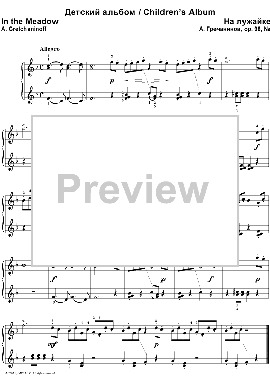Digital Sheet Music for Children’s Album. 6. In the Meadow by Alexander Gretchaninoff scored for Piano Solo; id:364004