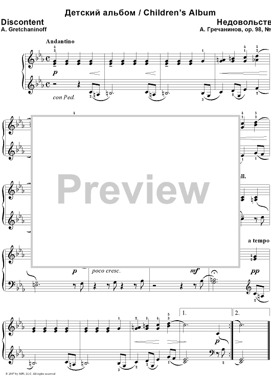 Digital Sheet Music for Children’s Album. 7. Discontent by Alexander Gretchaninoff scored for Piano Solo; id:364005