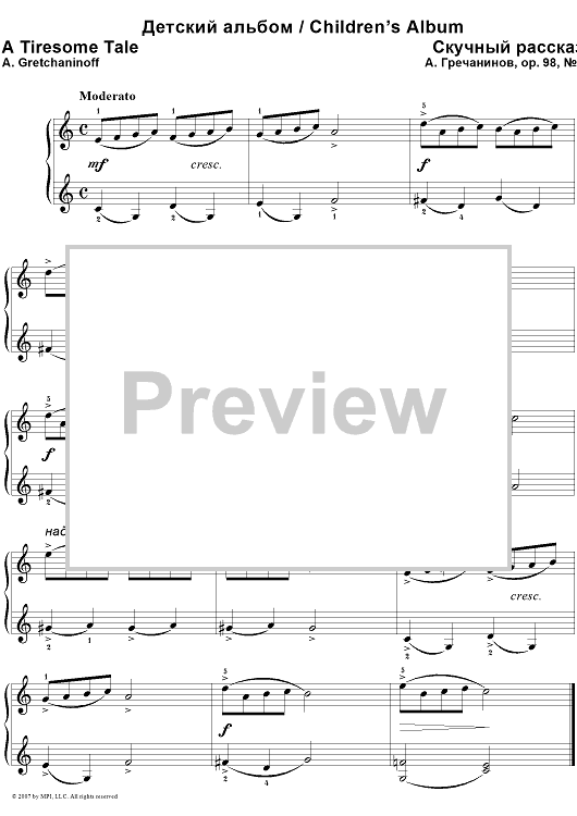 Digital Sheet Music for Children’s Album. 8. A Tiresome Tale by Alexander Gretchaninoff scored for Piano Solo; id:364006