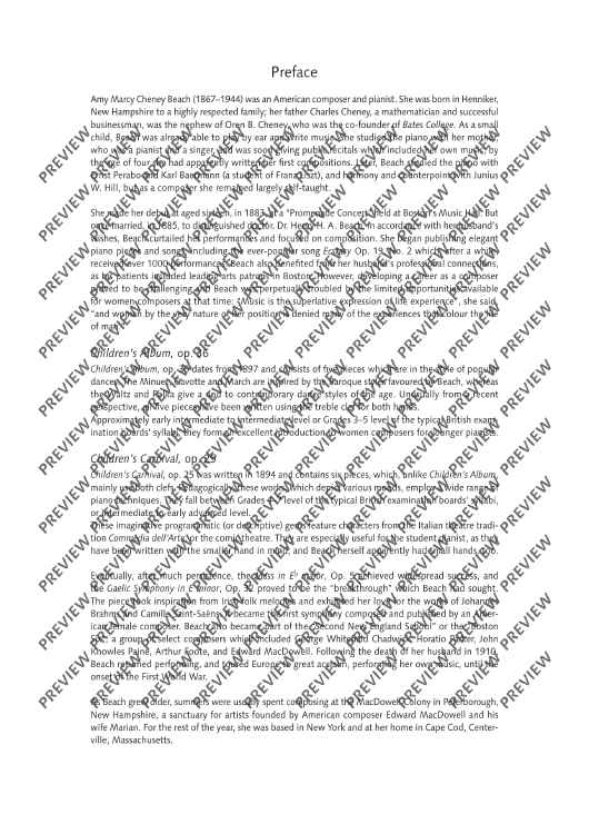 With Children's Album and Children's Carnival, Amy Beach continues the tradition of famous 19th century piano cycles for young players. The dances and character pieces are ideal for lessons and first auditions. This new edition from the Student Edition Repertoire series was edited by Melanie Spanswick, who has added useful fingerings, tempo and pedal indications to the repertoire and wrote practical playing instructions for all pieces.