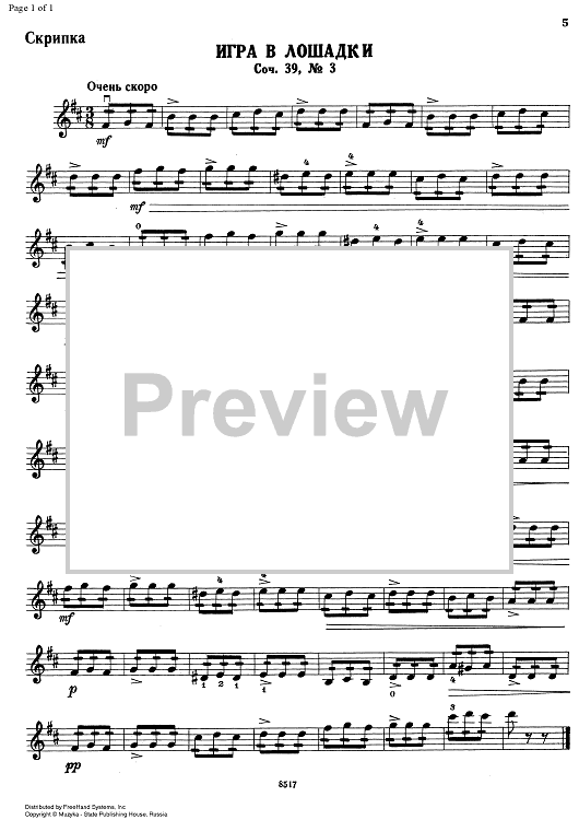 "Children's Album. No. 3. Playing Hobby-Horses - Violin" Sheet Music by Peter Ilyich Tchaikovsky