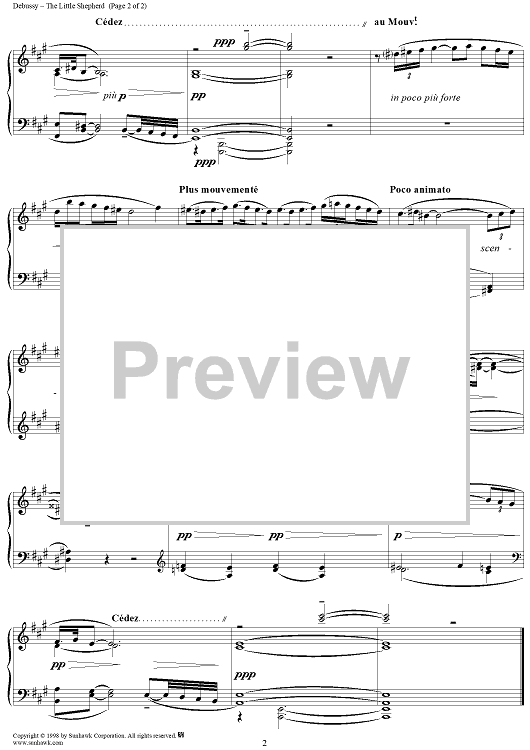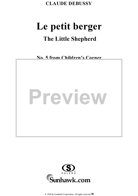 Digital Sheet Music for Children's Corner No. 5: The Little Shepherd by Claude Debussy scored for Piano Solo; id:113428