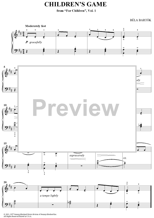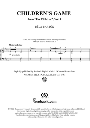 Digital Sheet Music for Children's Game by , Bela Bartok scored for Piano Solo; id:287592