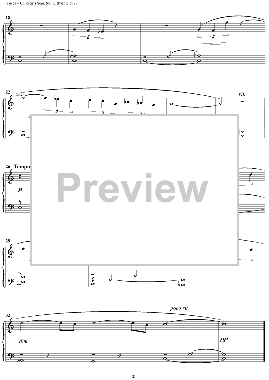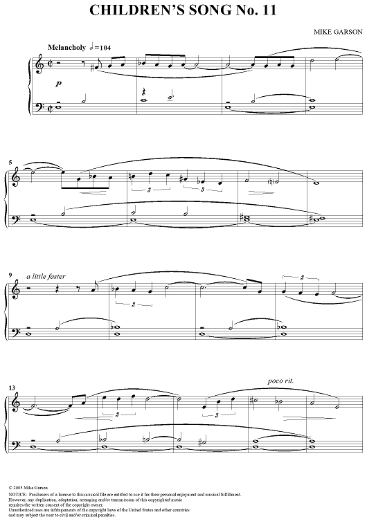 Digital Sheet Music for Children's Song No. 11 by , Mike Garson scored for Piano Solo; id:315094