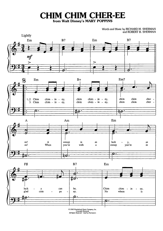 "Chim Chim Cher-Ee" Sheet Music by Richard M. Sherman