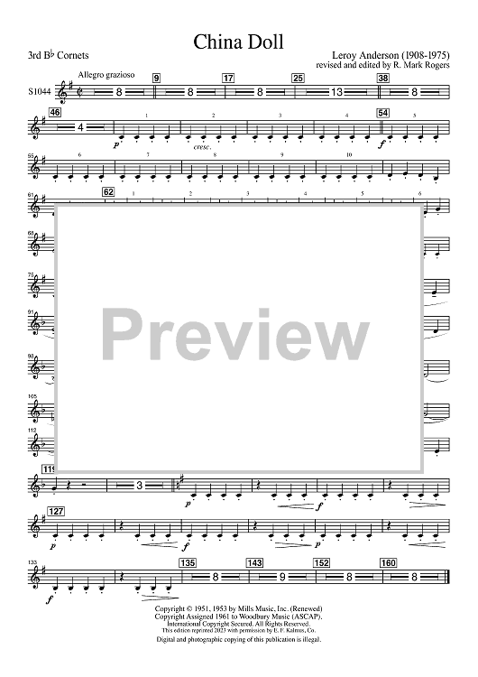 Digital Sheet Music for China Doll - Bb Cornet 3 by Leroy Anderson scored for Concert Band; id:502182