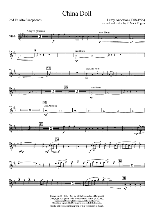 "China Doll - Eb Alto Sax 2" Sheet Music by Leroy Anderson