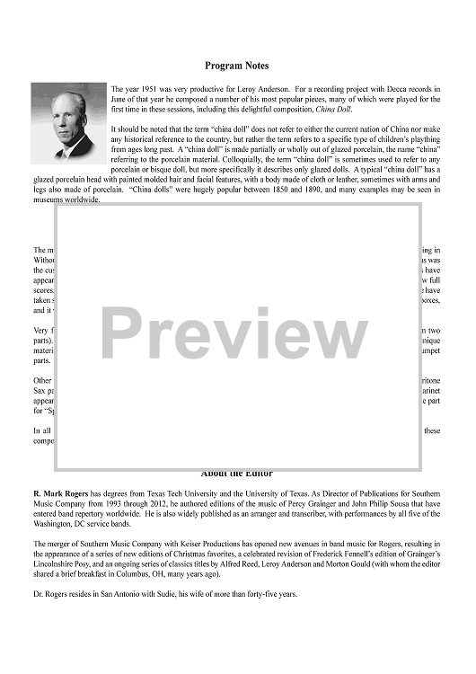 Digital Sheet Music for China Doll - Full Score by Leroy Anderson scored for Concert Band; id:502161