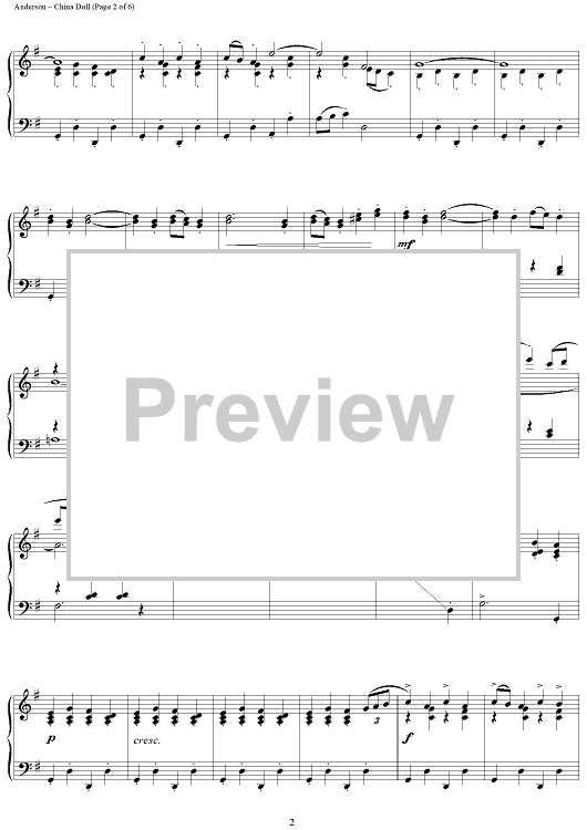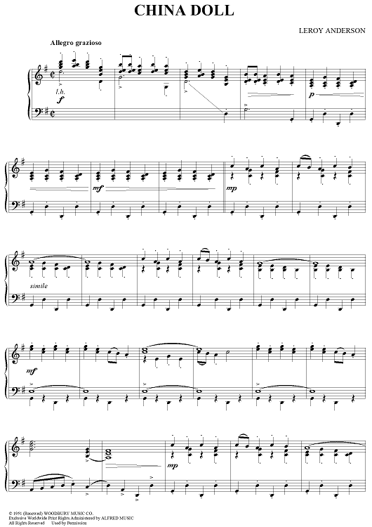 Digital Sheet Music for China Doll by Leroy Anderson scored for Piano Solo; id:321686