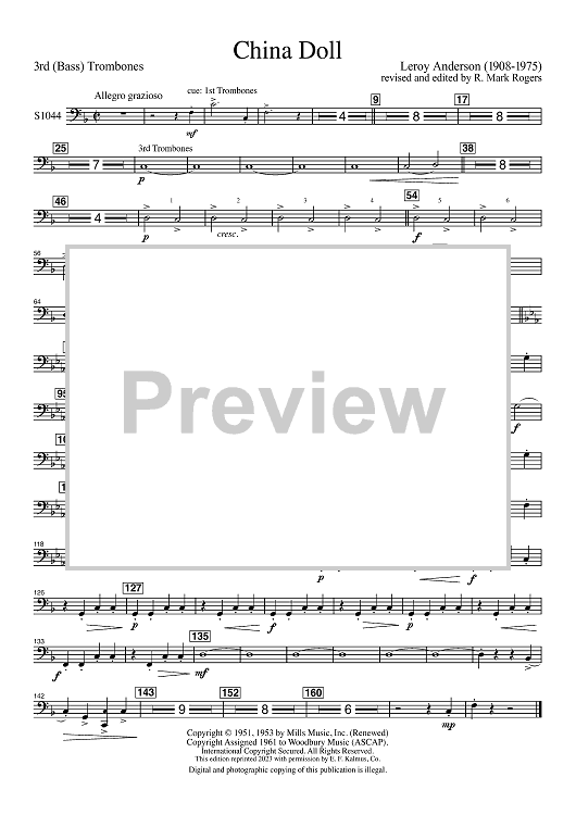 "China Doll - Trombone 3 (Bass)" Sheet Music by Leroy Anderson