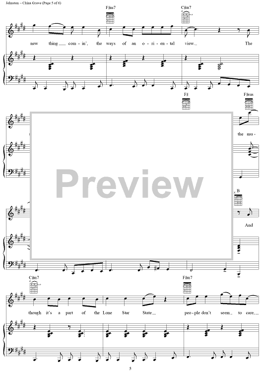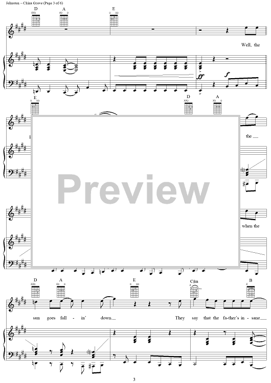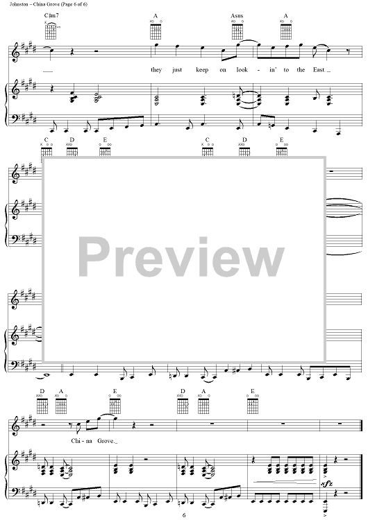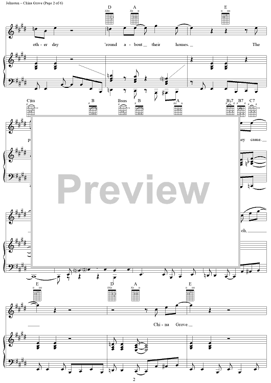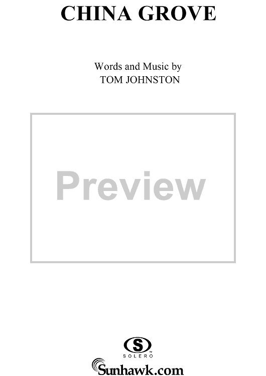 Digital Sheet Music for China Grove by Tom Johnston, The Doobie Brothers scored for Piano/Vocal/Chords; id:124130