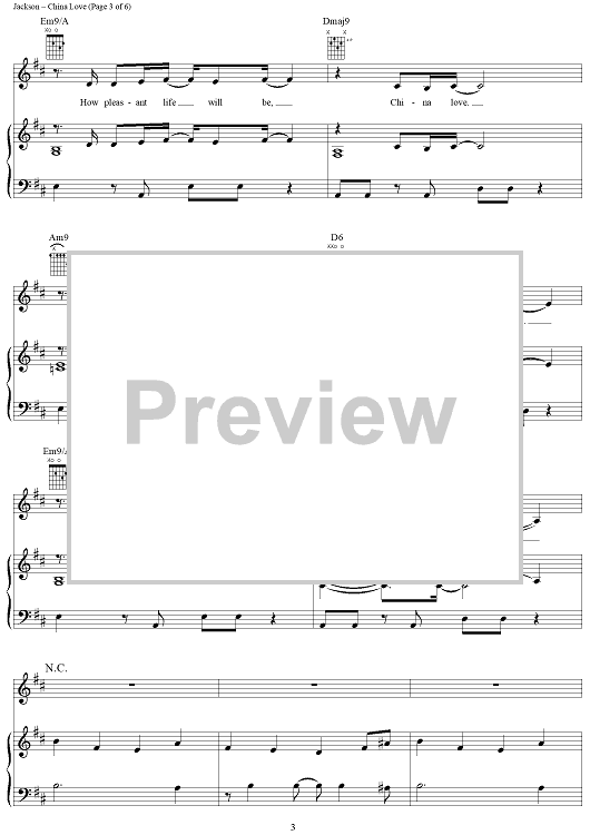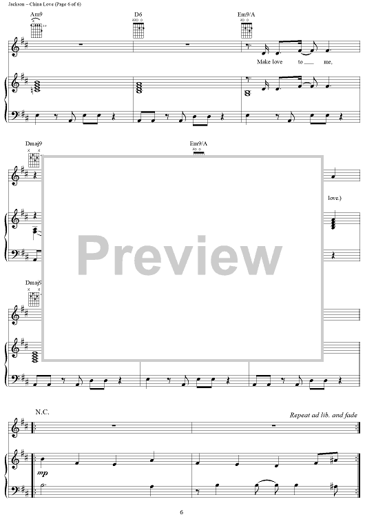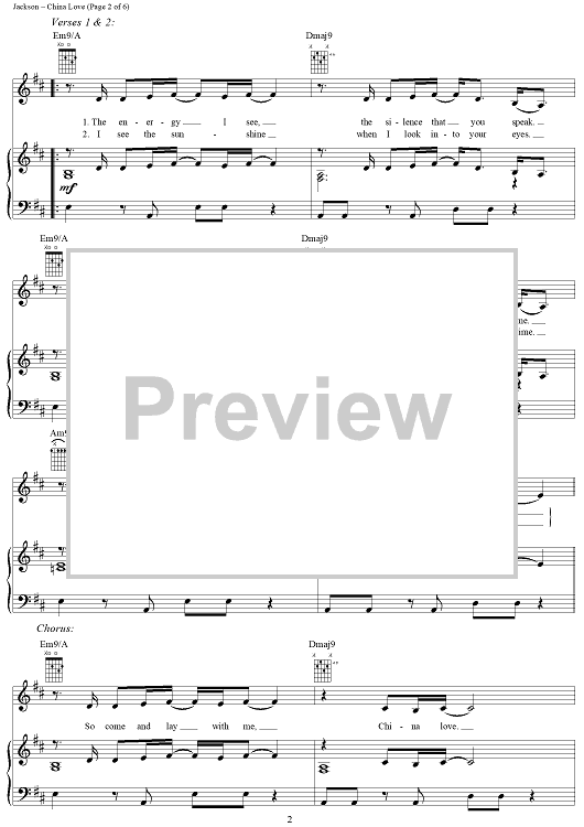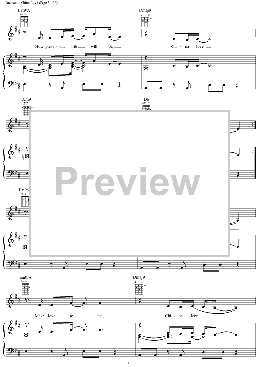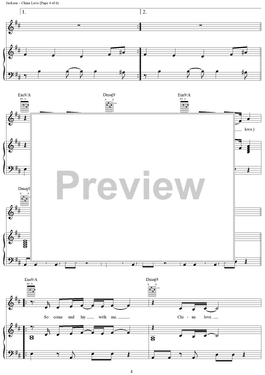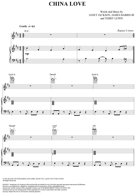 Digital Sheet Music for China Love by Janet Jackson, Jimmy Jam, Terry Lewis scored for Piano/Vocal/Chords; id:285721