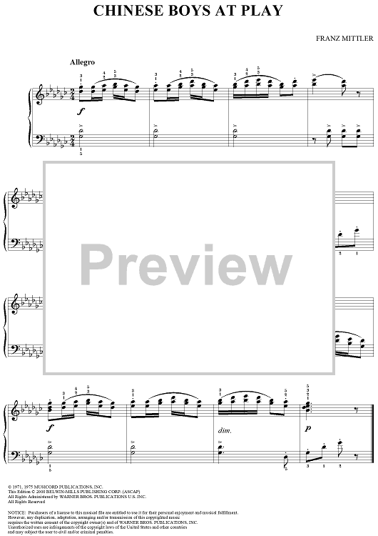 Digital Sheet Music for Chinese Boys at Play by Franz Mittler scored for Piano Solo; id:295852