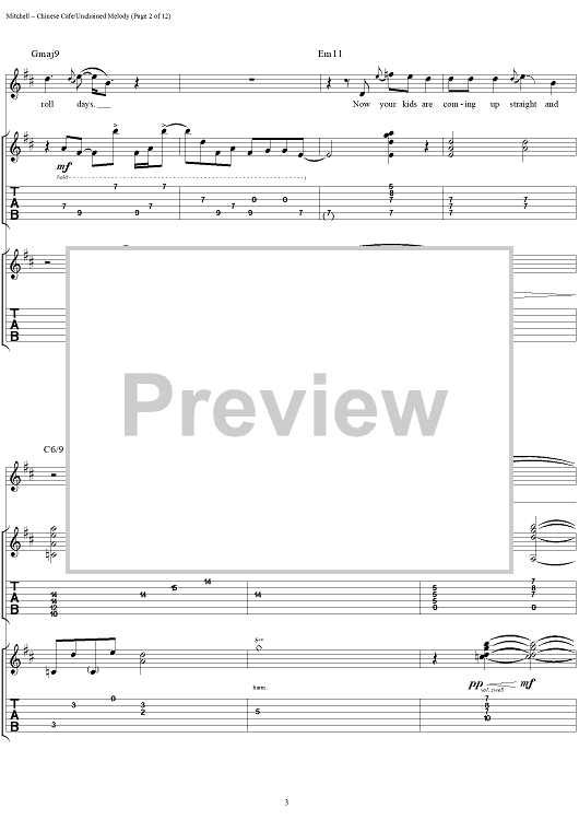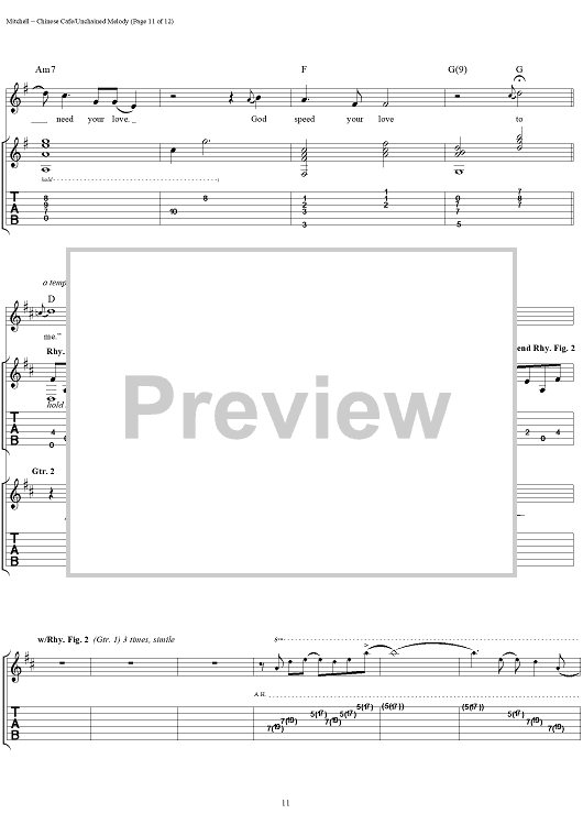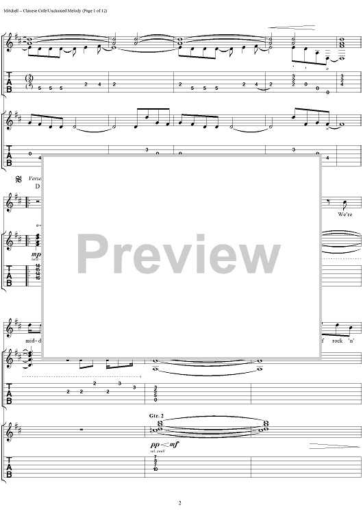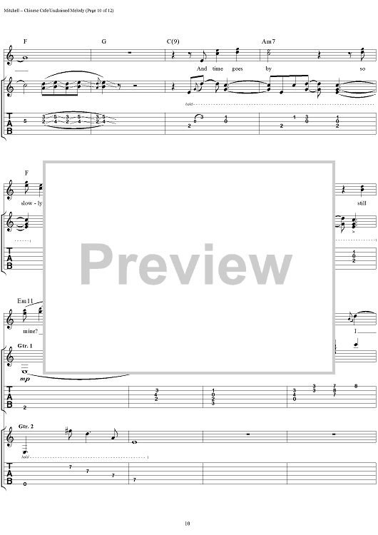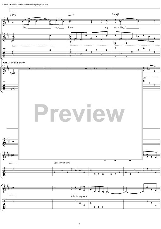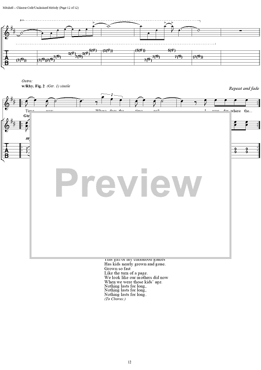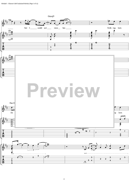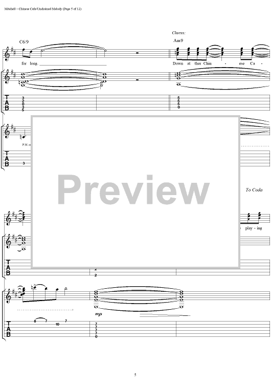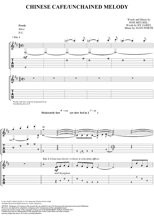 "Chinese Café/Unchained Melody" Sheet Music by Joni Mitchell