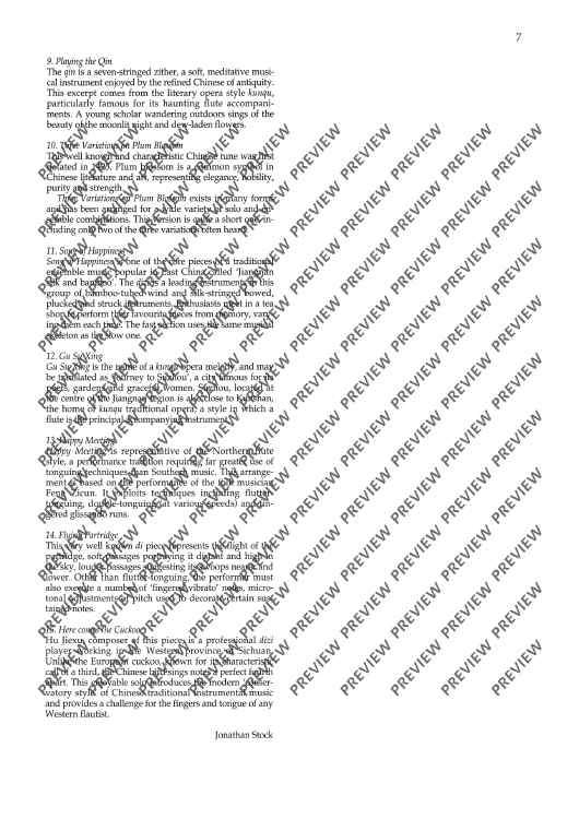 Collection of pieces for the traditional Chinese bamboo flute – Compiled and transcribed for performance on the transverse flute The edition is part of the Trinity syllabus 2007 (grade 6)