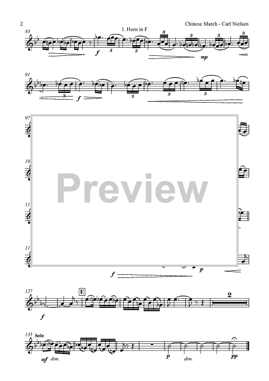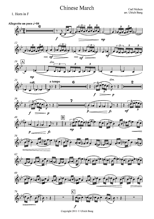 Digital Sheet Music for Chinese March - Horn in F 1 by , Carl Nielsen, Ulrich Bang scored for Brass Ensemble; id:419728