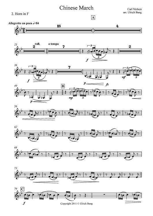 Digital Sheet Music for Chinese March - Horn in F 2 by , Carl Nielsen, Ulrich Bang scored for Brass Ensemble; id:419729