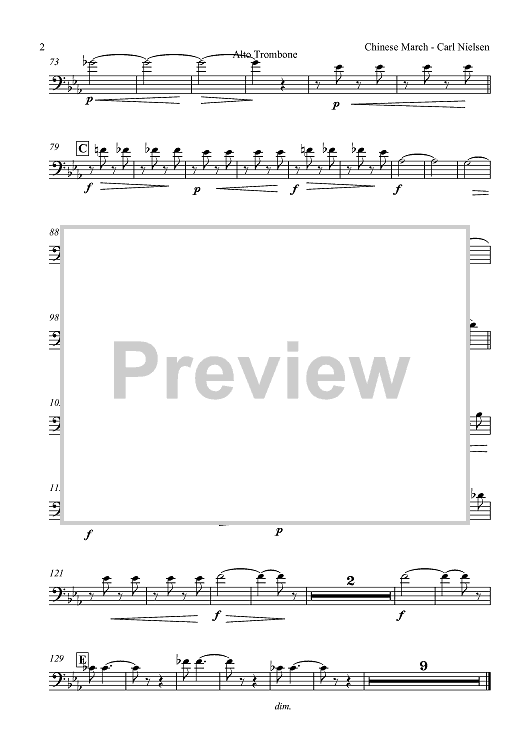 Digital Sheet Music for Chinese March - Tenor/Alto Trombone by , Carl Nielsen, Ulrich Bang scored for Brass Ensemble; id:419731