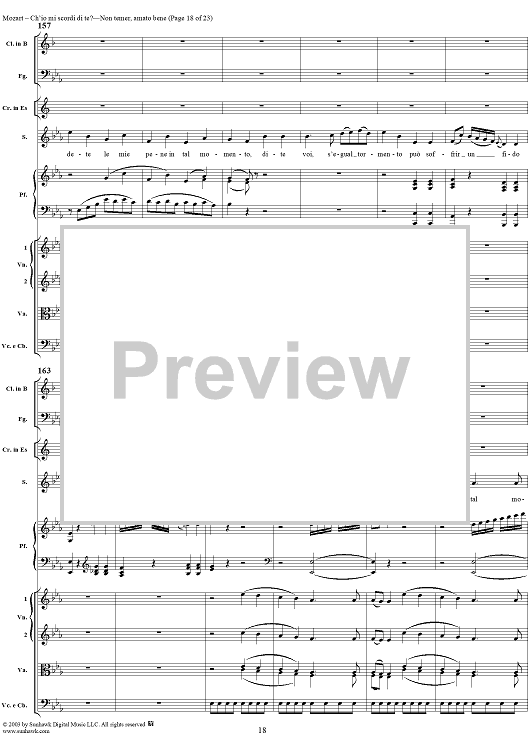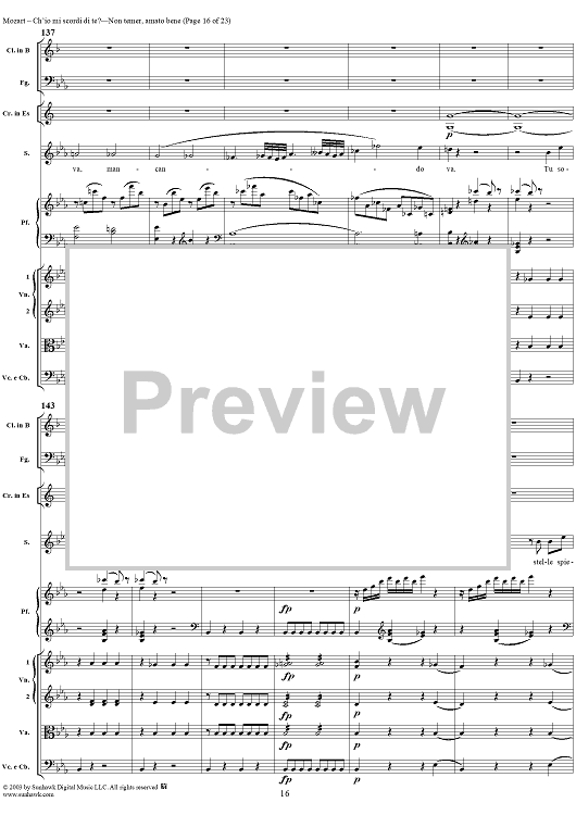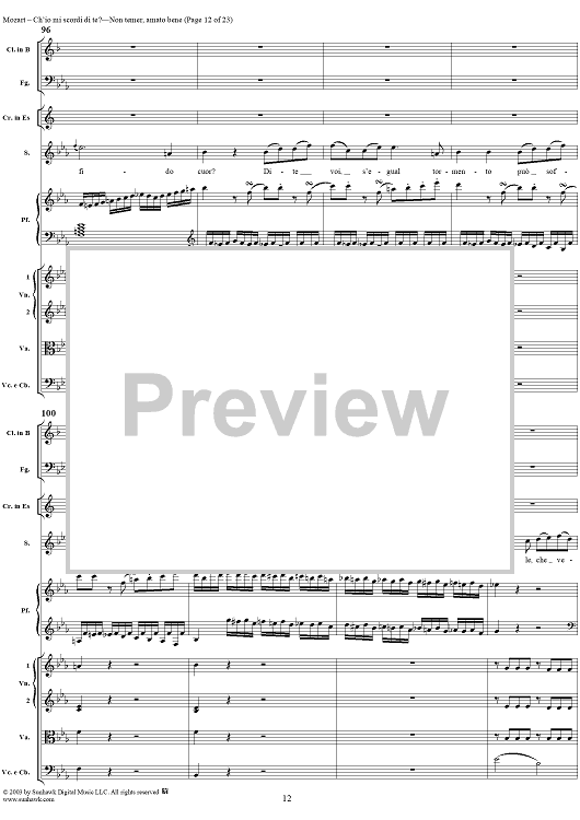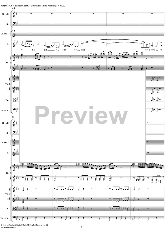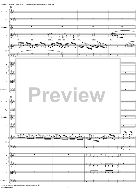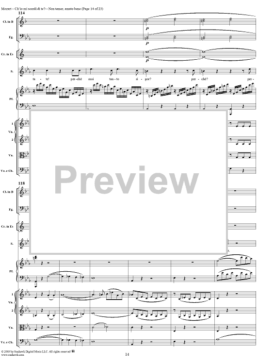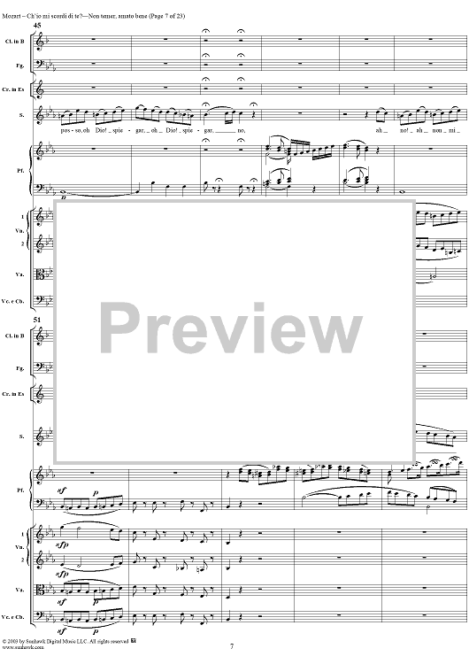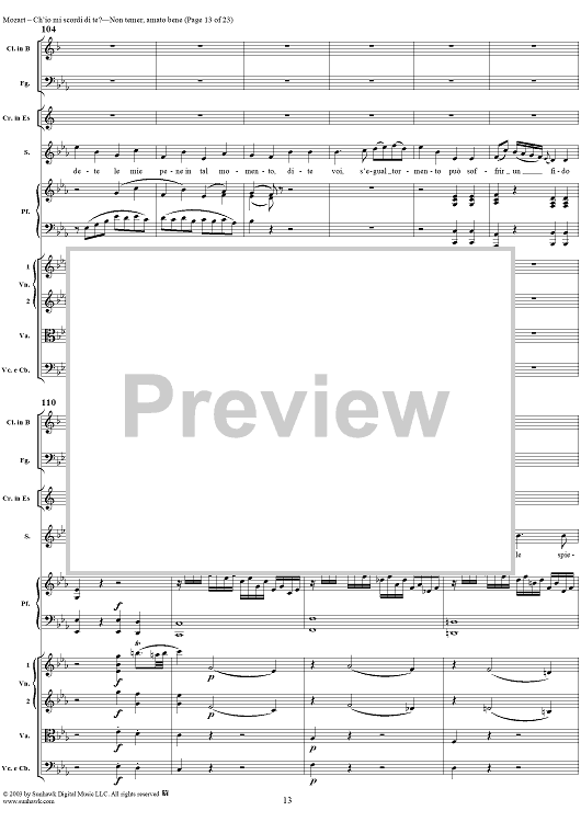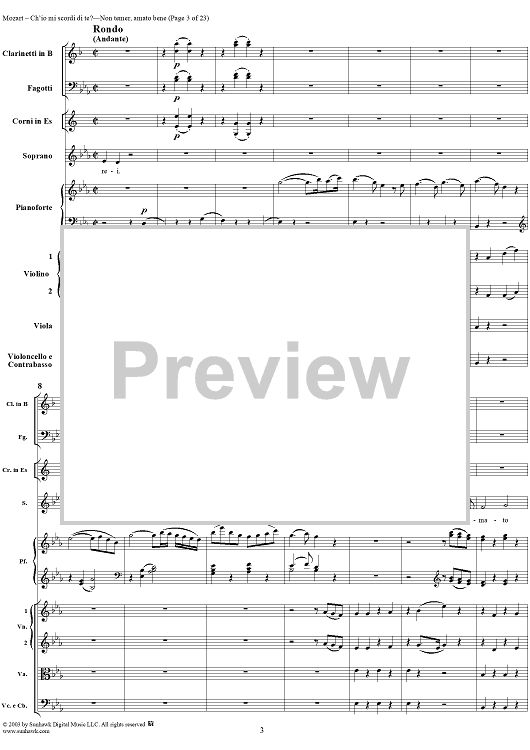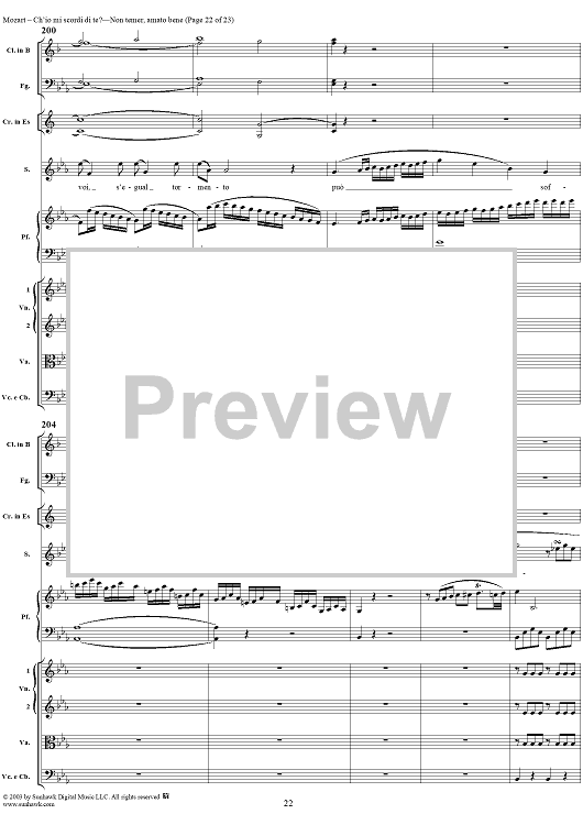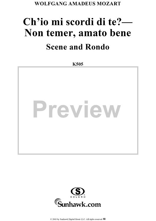 Digital Sheet Music for "Ch'io mi scordi di te?", scena and "Non temer, amato bene", rondo, K505 by Wolfgang Amadeus Mozart scored for Soprano/Orchestra; id:269989
