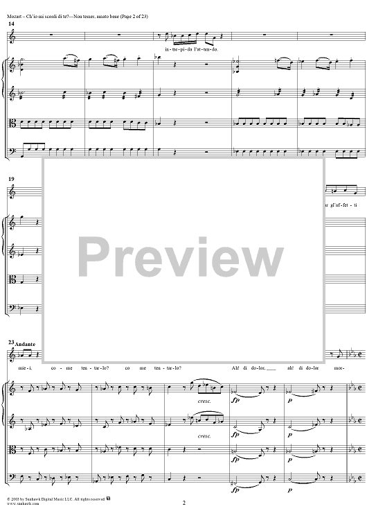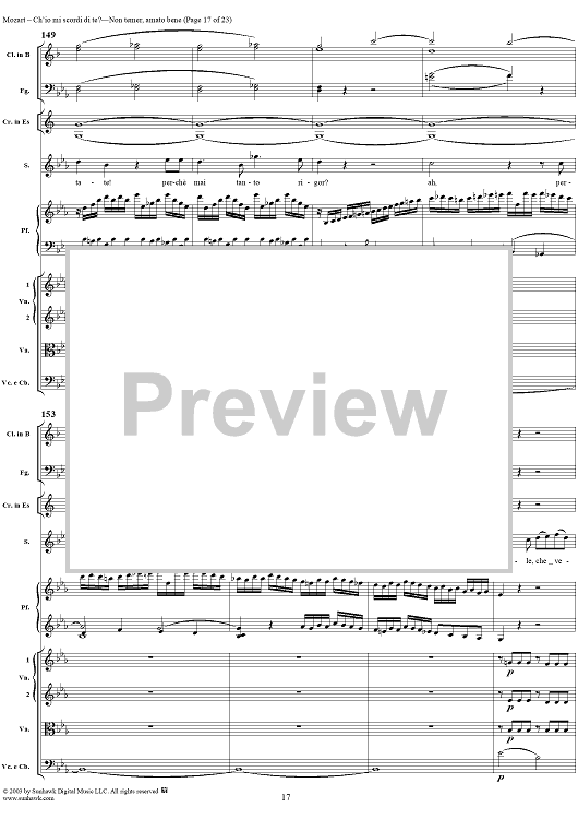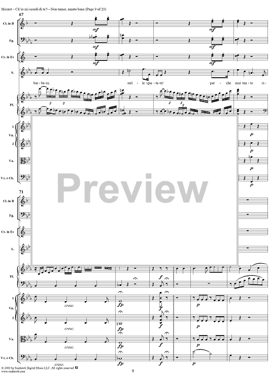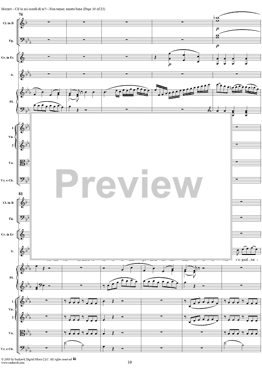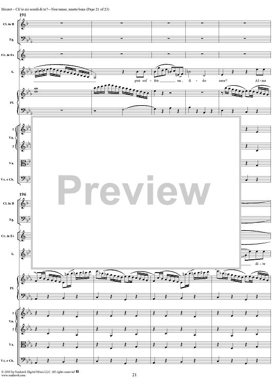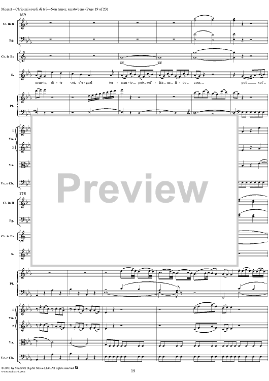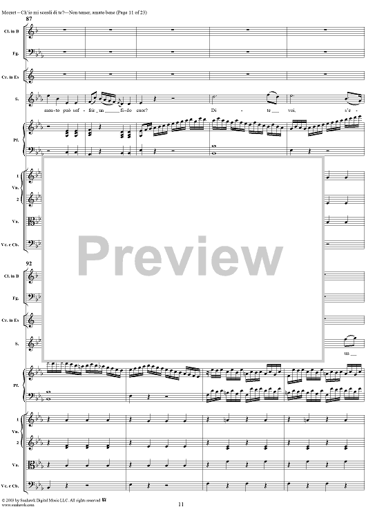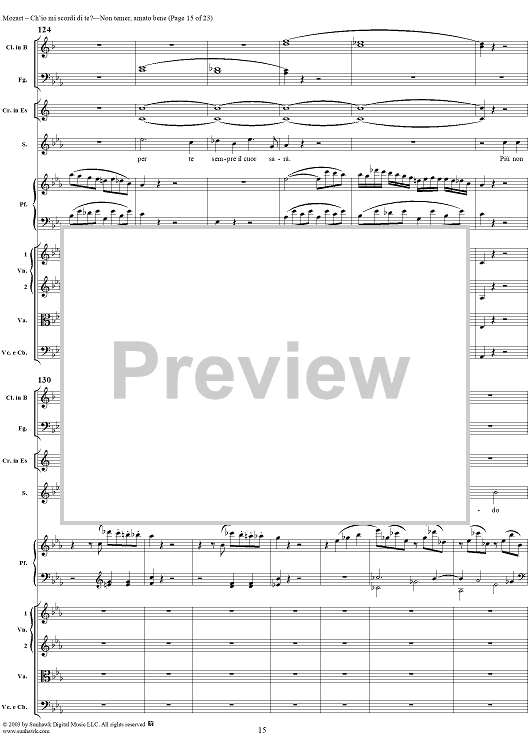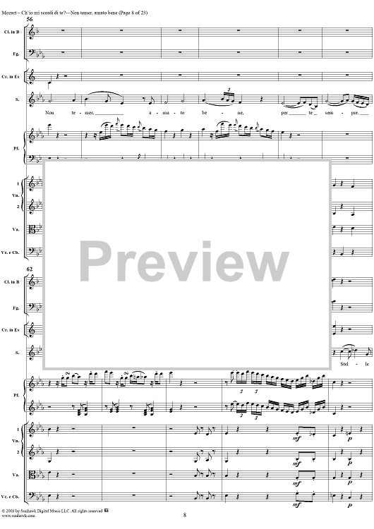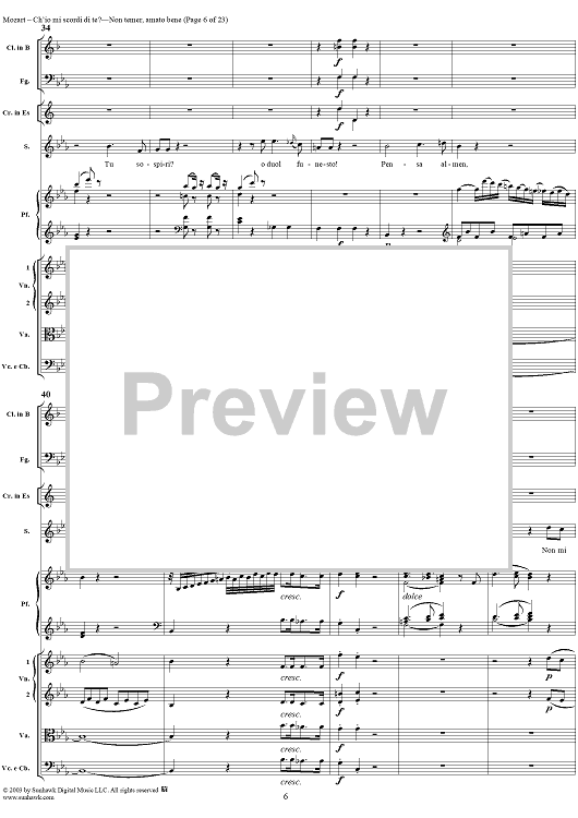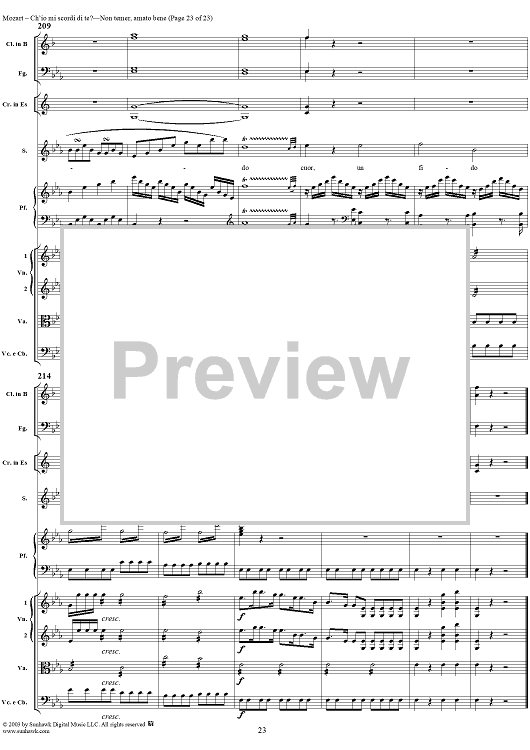Digital Sheet Music for "Ch'io mi scordi di te?", scena and "Non temer, amato bene", rondo, K505 by Wolfgang Amadeus Mozart scored for Soprano/Orchestra; id:269989