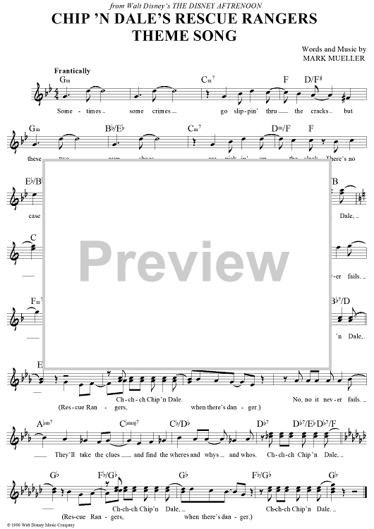 Digital Sheet Music for Chip 'N Dale's Rescue Rangers Theme Song by Mark Mueller scored for Lead Sheet; id:440788