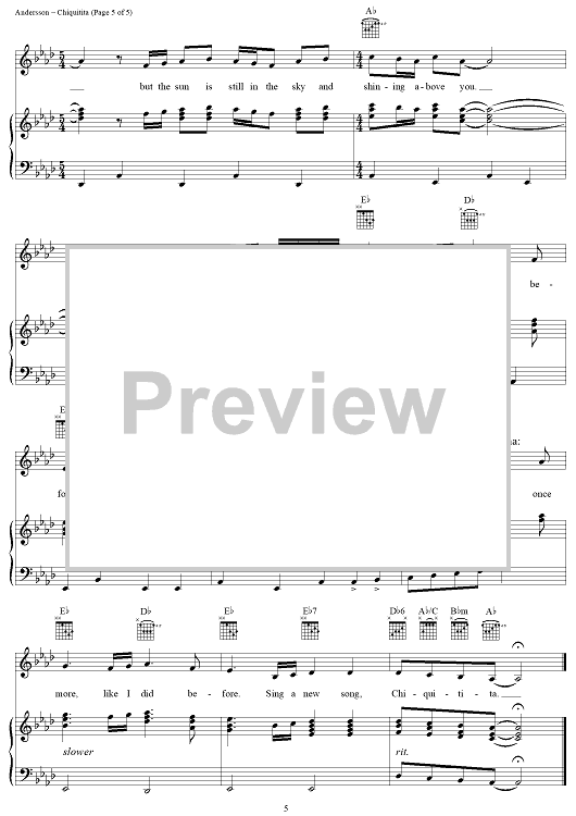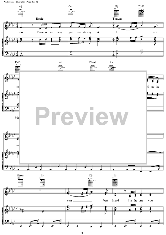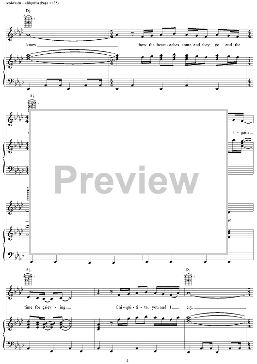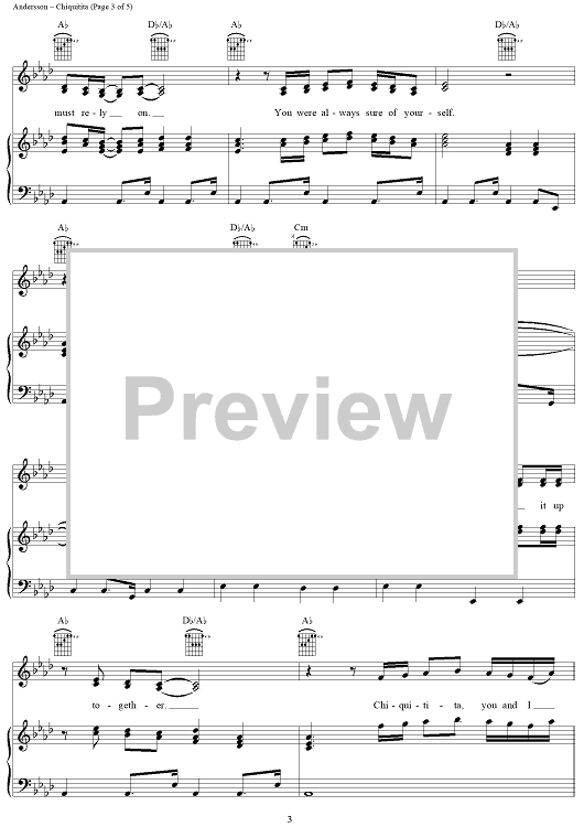 Digital Sheet Music for Chiquitita by ABBA, Benny Andersson, Bjorn Ulvaeus scored for Piano/Vocal/Chords; id:314970