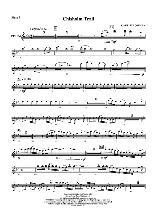 "Chisholm Trail - Flute 2" Sheet Music by Carl Strommen