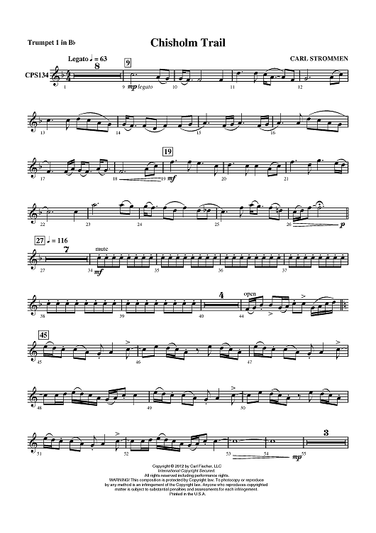 "Chisholm Trail - Trumpet 1 in Bb" Sheet Music by Carl Strommen