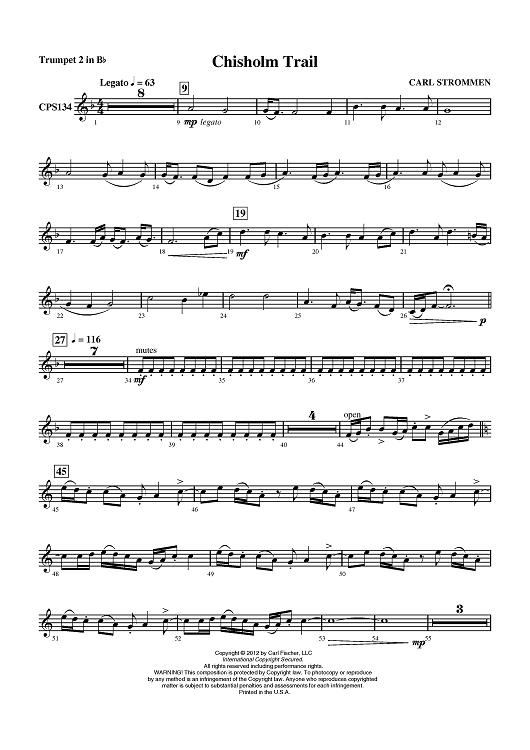 "Chisholm Trail - Trumpet 2 in Bb" Sheet Music by Carl Strommen