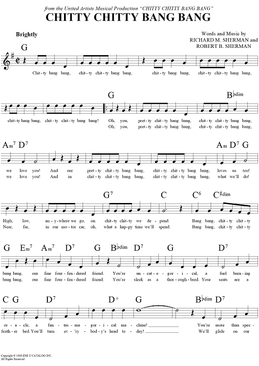 Digital Sheet Music for Chitty Chitty Bang Bang by Richard M. Sherman, Robert B. Sherman scored for Lead Sheet; id:257572