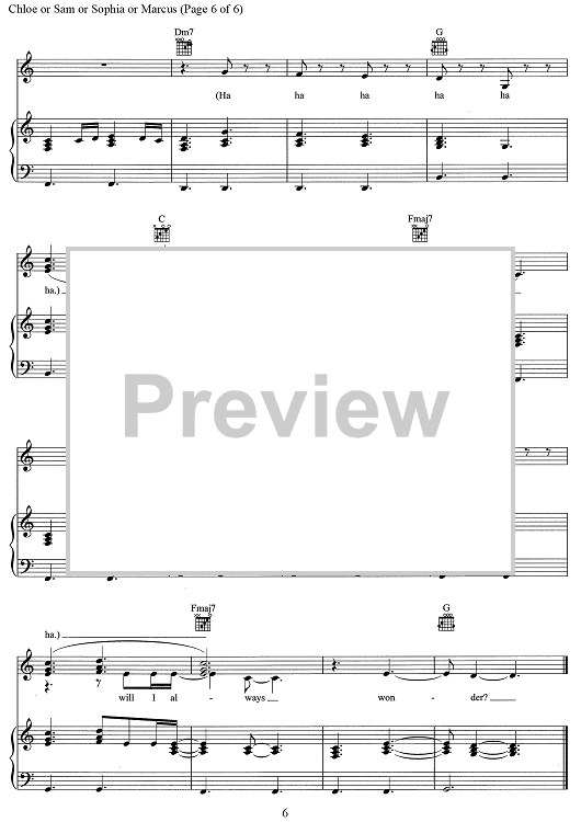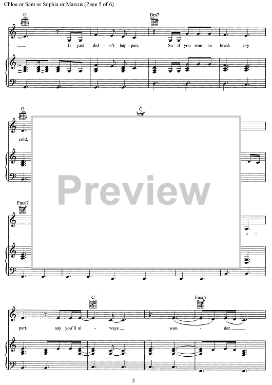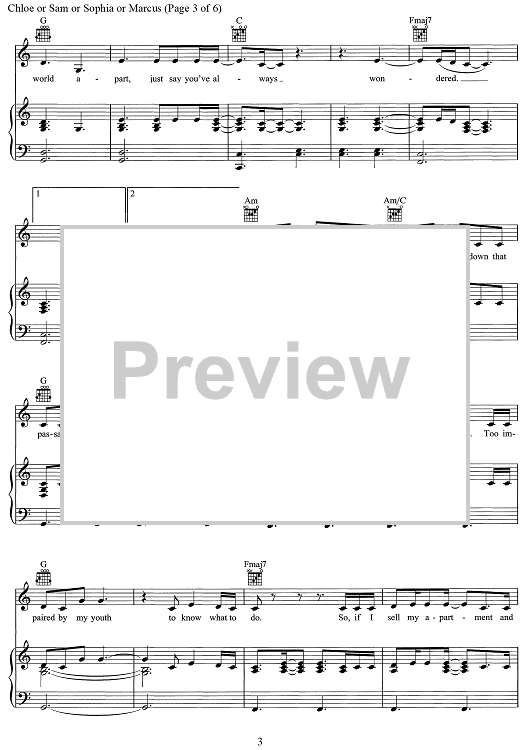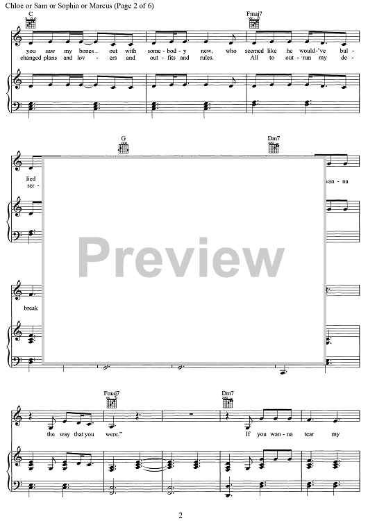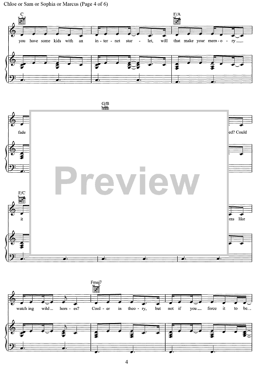 Digital Sheet Music for Chloe or Sam or Sophia or Marcus by Taylor Swift, Aaron Dessner scored for Piano/Vocal/Chords; id:501997