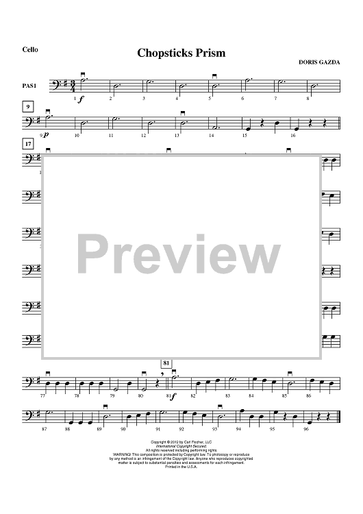 "Chopsticks Prism - Cello" Sheet Music by Doris Gazda