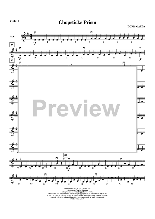 "Chopsticks Prism - Violin 1" Sheet Music by Doris Gazda