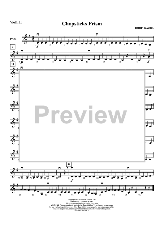 "Chopsticks Prism - Violin 2" Sheet Music by Doris Gazda