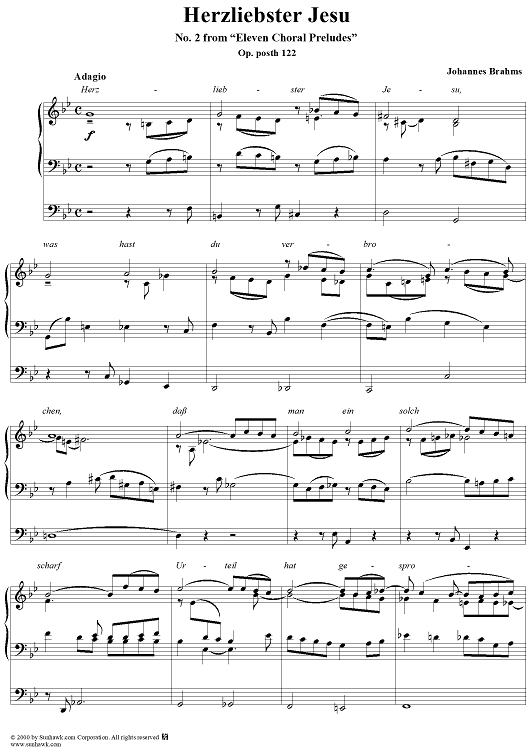 Digital Sheet Music for Choral Prelude for Organ: Op. 122, No. 2 ("Herzliebster Jesu") by , Johannes Brahms scored for Organ Solo; id:241315
