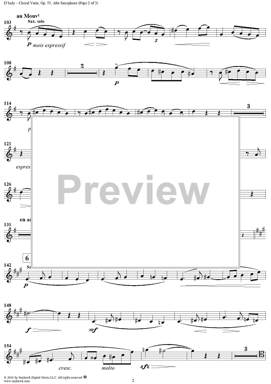 "Choral Varie - Alto Saxophone" Sheet Music by Vincent d'Indy